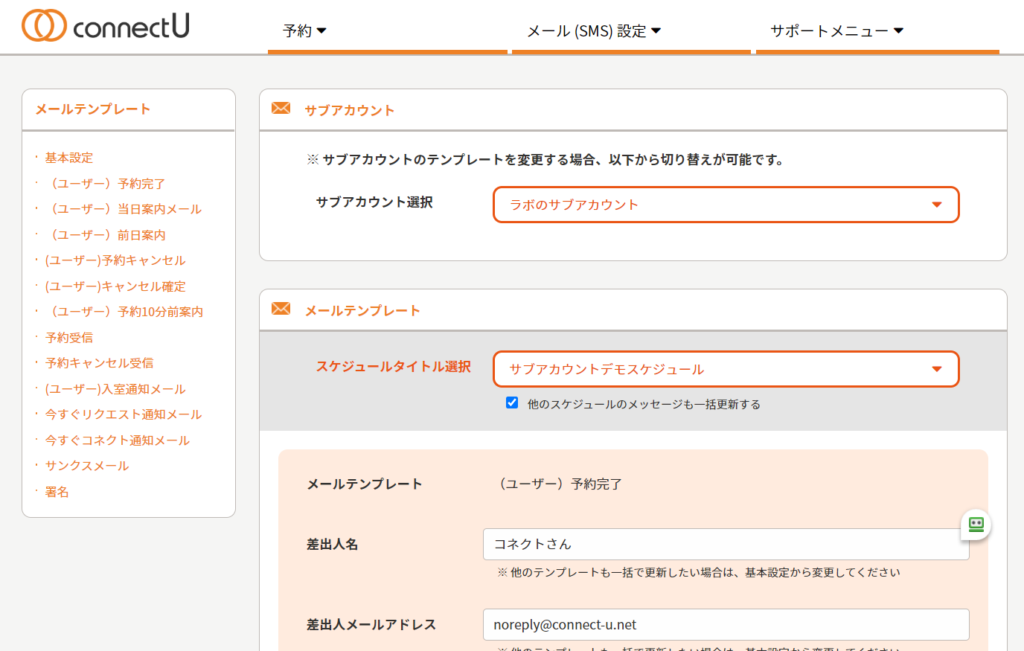 子アカウントのメールテンプレートは親アカウントから編集することが可能です。