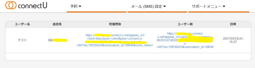 ※「ユーザー側」は送信した先へ送られた接続URLです。