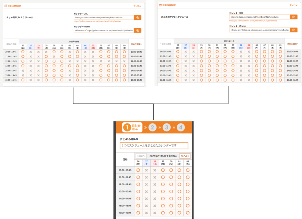 紐づけられるスケジュール数に制限はありませんが、紐づけるスケジュールが多いとユーザーに表示するカレンダーの表示が重くなる場合がありますのでご注意ください。