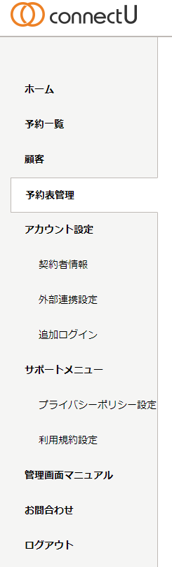 今までTOPページにありました「スケジュール一覧」は、左サイドメニューにある「予約表管理」に移動いたしました。